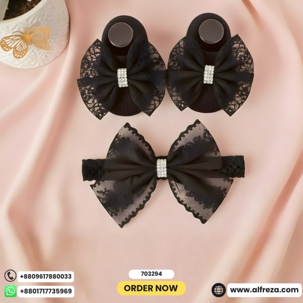 Baby Circle Design Socks Shoes – Specially designed for newborns and infants, these soft and elegant shoes offer comfort, safety, and style. The delicate lace design with a sparkling bow makes them perfect for any adorable outfit.