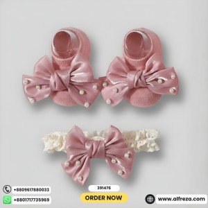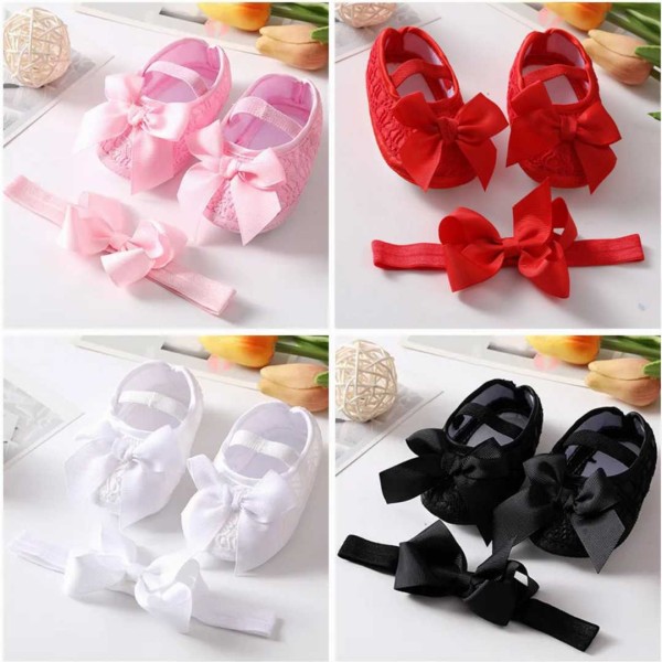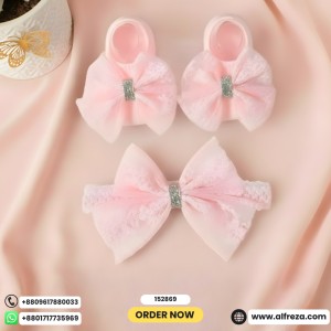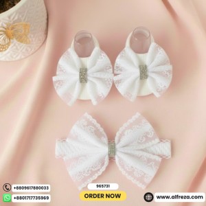 ০-১২ মাস মেয়ে বাবুর জন্য Princes tie Shoes With Hairband Red