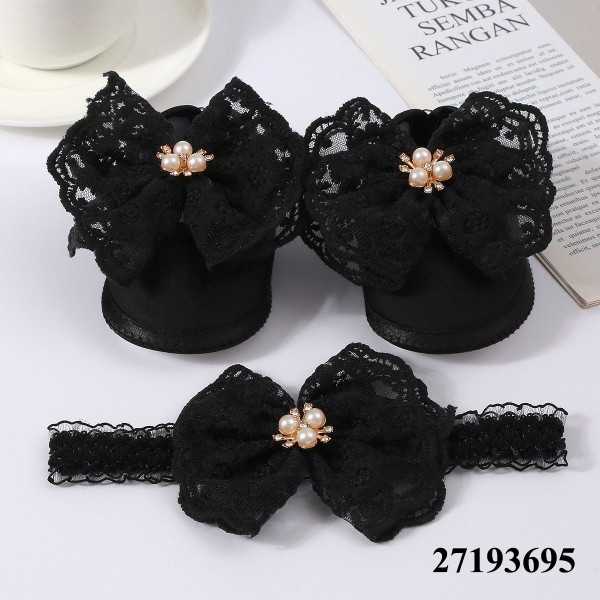 ০-১২ মাস মেয়ে বাবুর জন্য Butterfly Shoes With Hairband Black